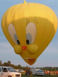 Cartoon Hot Air Balloons are four special shape Hot Air Balloons that look like yellow bird, Puddy Cat, Spunky, and The Flying Purple People Eater. It all started when, after driving racecars for 10 years, John Cavin was looking for an inexpensive way to get the same thrill. That's when, in 1979, he come upon Hot Air Balloon racing. It was an adventure from the beginning and John has been flying ever since.